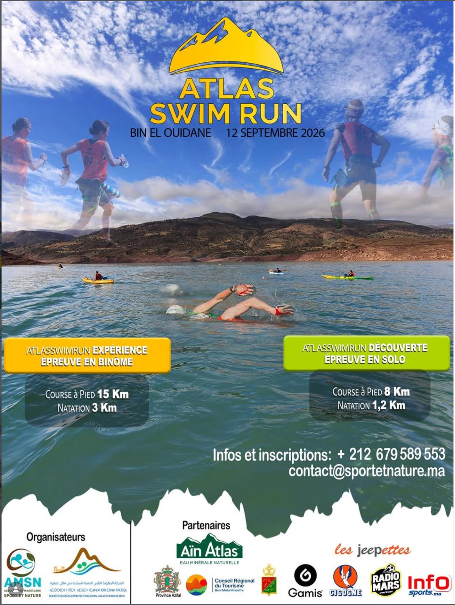 Swimrun event organized by the Association Marocaine Sport et Nature at Bin El Ouidane. It is presented as the revival of the former Bin Swimrun and as a structured race combining open-water swimming and trail or road running sections in a natural lake setting. The event includes an individual discovery format and a team experience format. Available materials indicate participation requirements related to age, open-water swimming ability, physical preparation, and personal responsibility for race conditions.