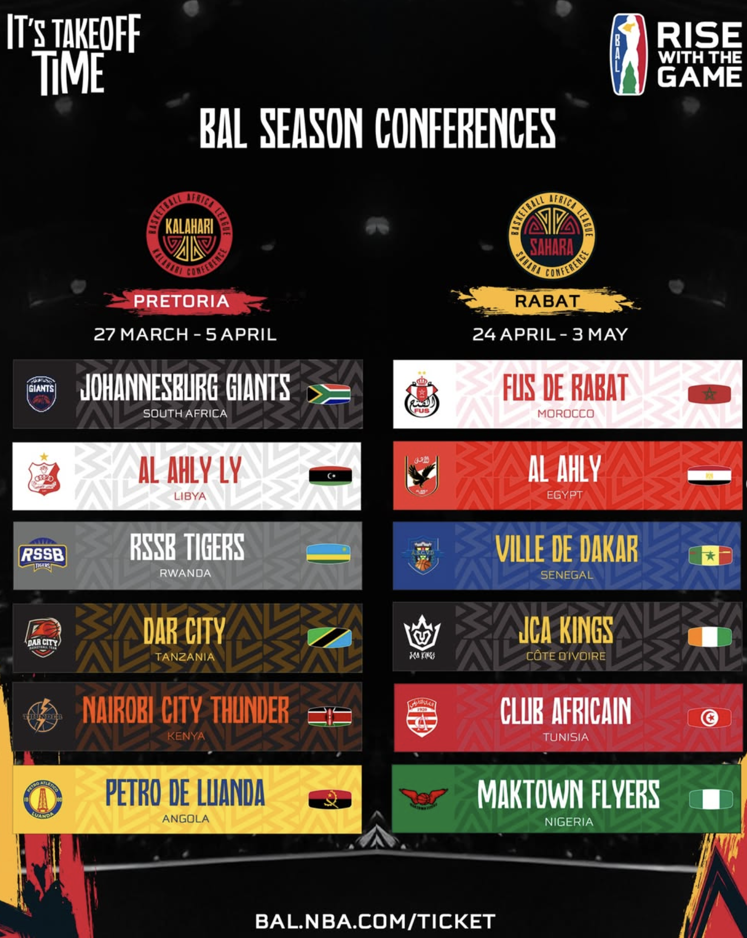 The Basketball Africa League (BAL) is a professional continental competition organized by NBA Africa and FIBA Africa, bringing together champion clubs from across Africa. The Sahara Conference of the 6th BAL season is hosted in Rabat in collaboration with the Royal Moroccan Basketball Federation. The event features a series of group-stage games between six qualified clubs, including FUS de Rabat, played at the Prince Moulay Abdellah Sports Complex. Matches are held in a round-robin format with multiple games per day and ticketed access across several seating categories.