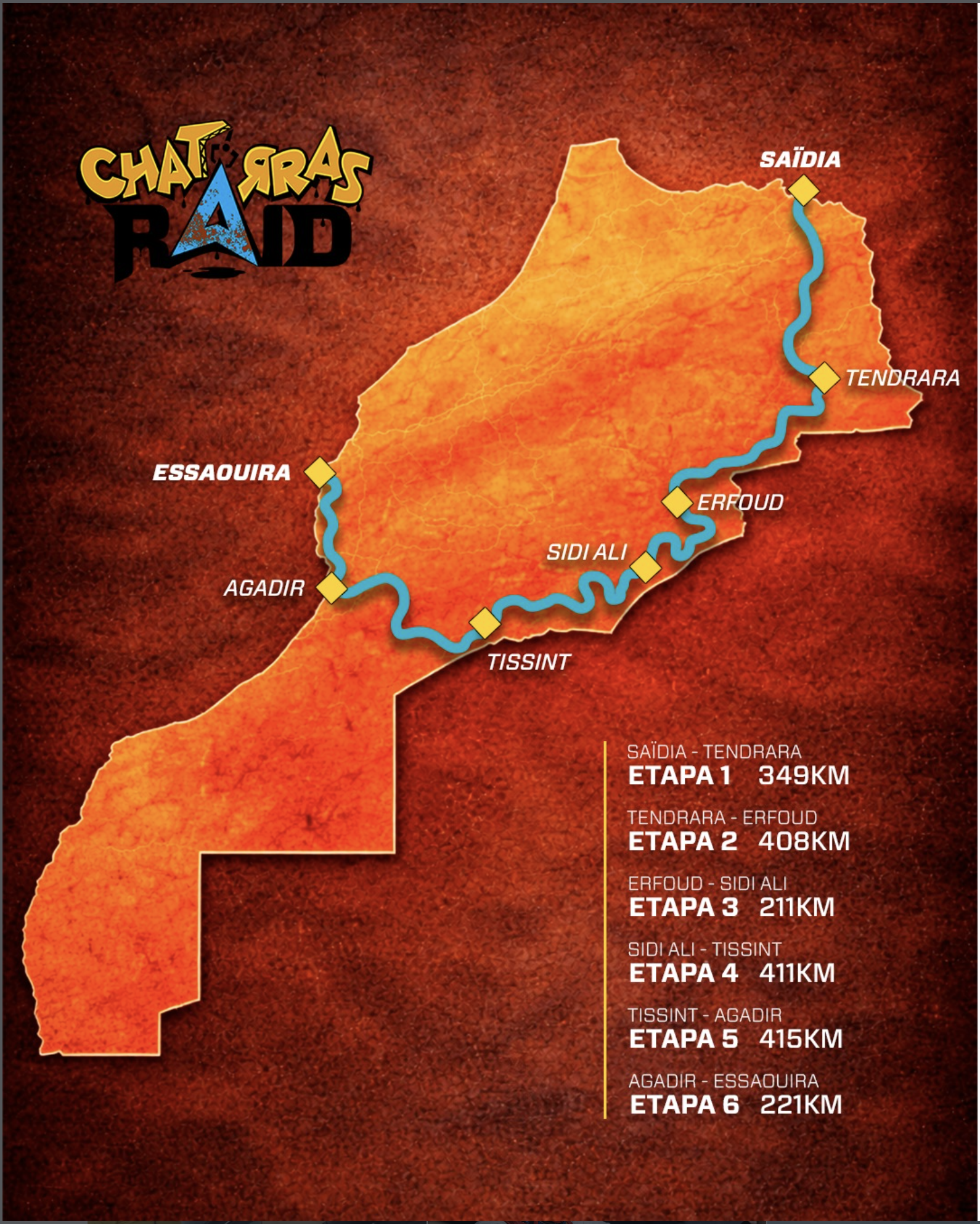 Chatarras Raid 2026 – Destination Essaouira is a multi-stage amateur raid across Morocco for older cars and light vehicles, presented as an adventure-focused event built around fun, teamwork, endurance, and solidarity. The organizer describes it as a limited-capacity edition ending on the Atlantic coast in Essaouira. The event runs from Saïdia to Essaouira through several Moroccan stops, with the shared route material showing Tendrara, Erfoud, Sidi Ali, Tissint, and Agadir along the way. Eligible vehicles include older cars, light vans, and older 4x4s, provided they have valid inspection, insurance, and registration documents