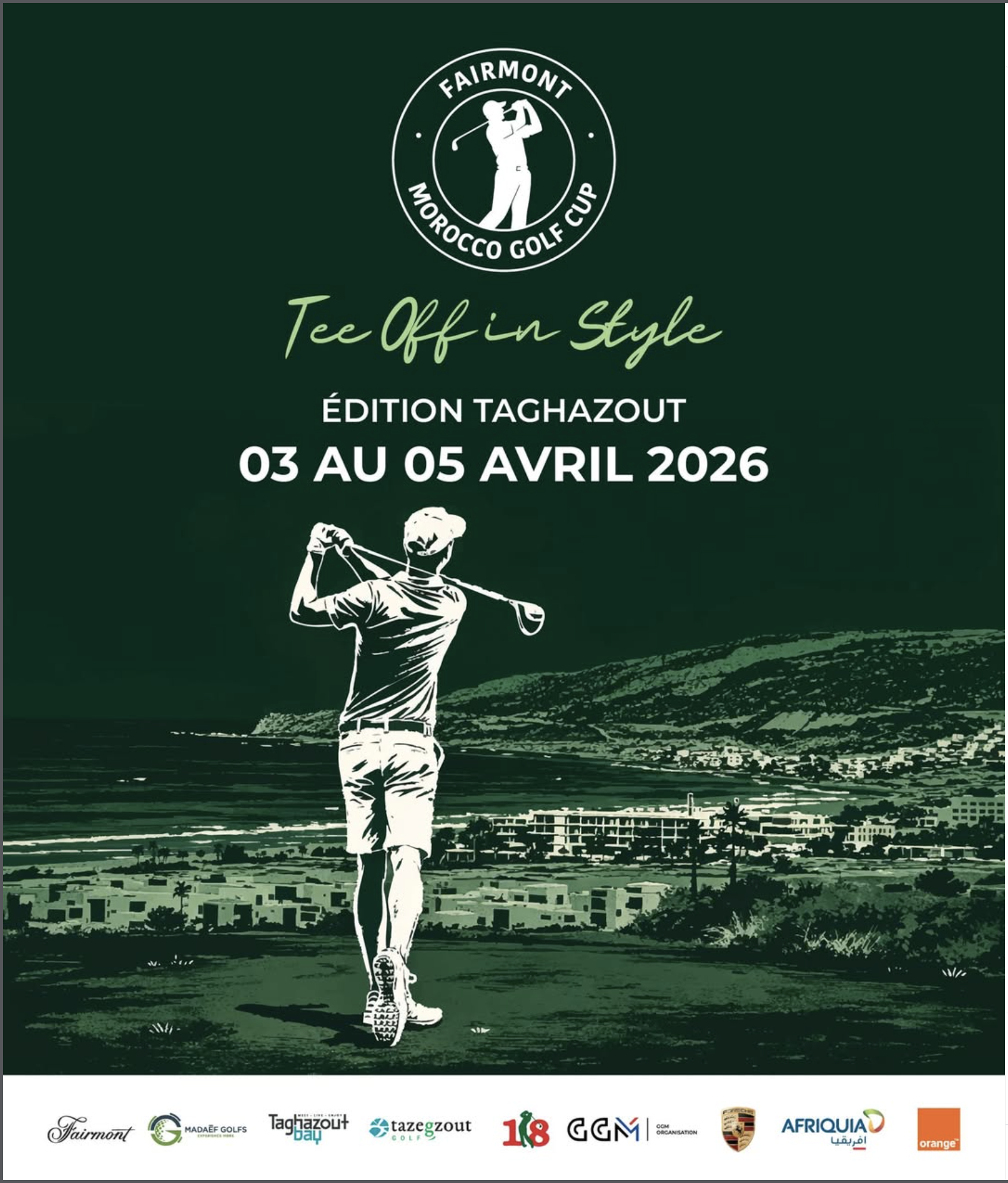 The Fairmont Morocco Golf Cup Taghazout is an amateur golf competition held at Golf Tazegzout, located in Taghazout Bay near Agadir. The event is part of a series organized by Fairmont and combines sport with hospitality experiences in a coastal setting overlooking the Atlantic Ocean. The tournament is played in teams of two using a scramble format over two competition days (36 holes). It includes shotgun starts, gross and net rankings, and additional contests such as longest drive and nearest to the pin. The event integrates competition rounds with hospitality services including meals, on-course refreshments and social events.