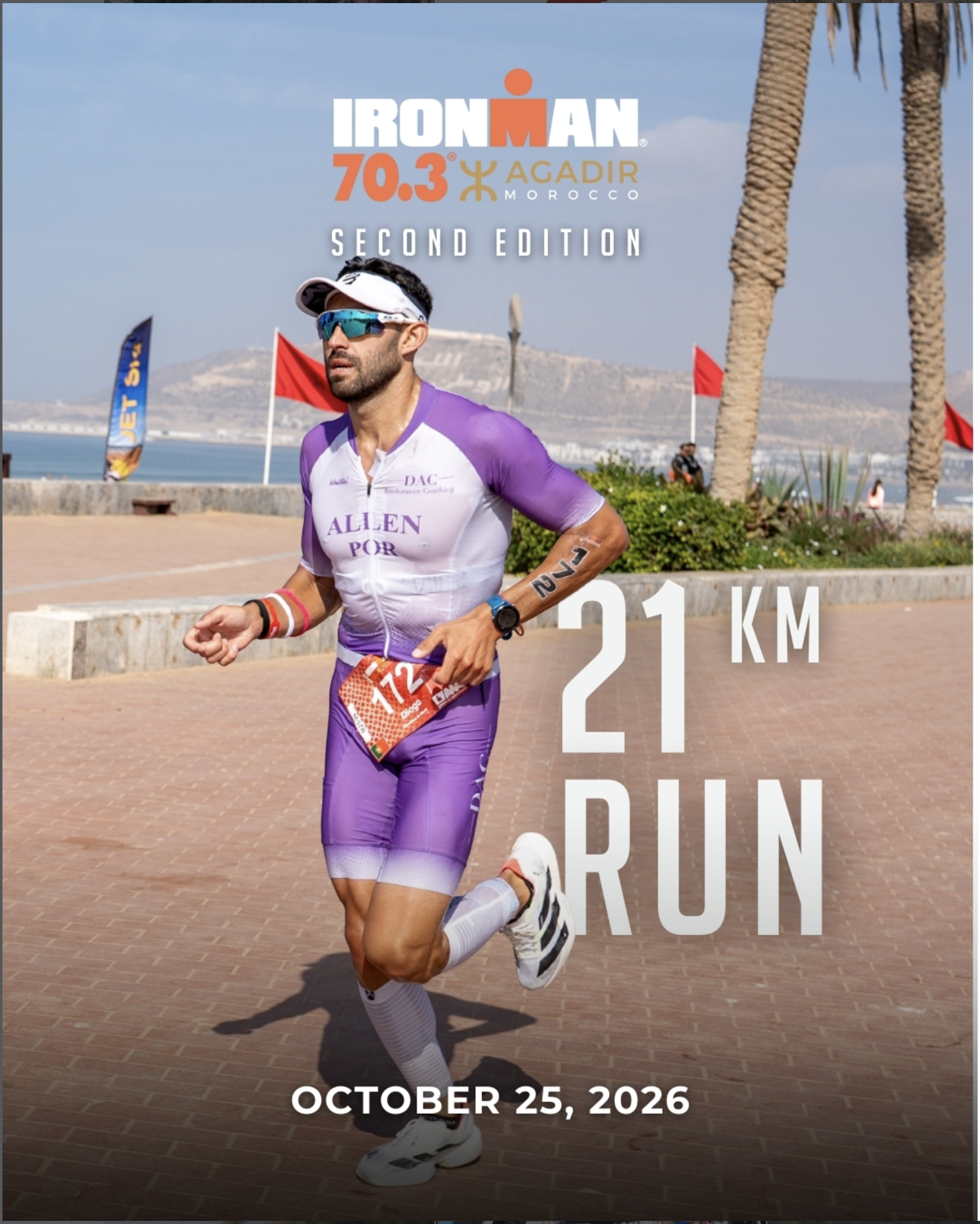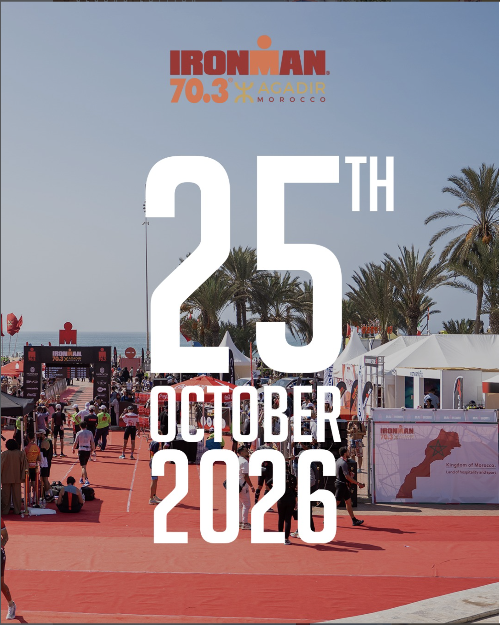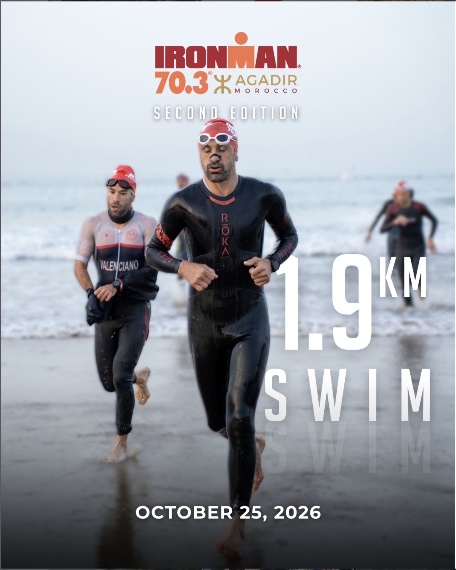 IRONMAN 70.3 Agadir is an international triathlon event held in Agadir, part of the global IRONMAN 70.3 series. The race attracts amateur and professional athletes and serves as a qualifying event for the IRONMAN 70.3 World Championship, taking place along the Atlantic coast. The race format includes a 1.9 km ocean swim, a 90 km rolling bike course, and a 21.1 km flat run. The course follows coastal and urban routes with moderate temperatures and structured race support including aid stations, timing, and official rankings.