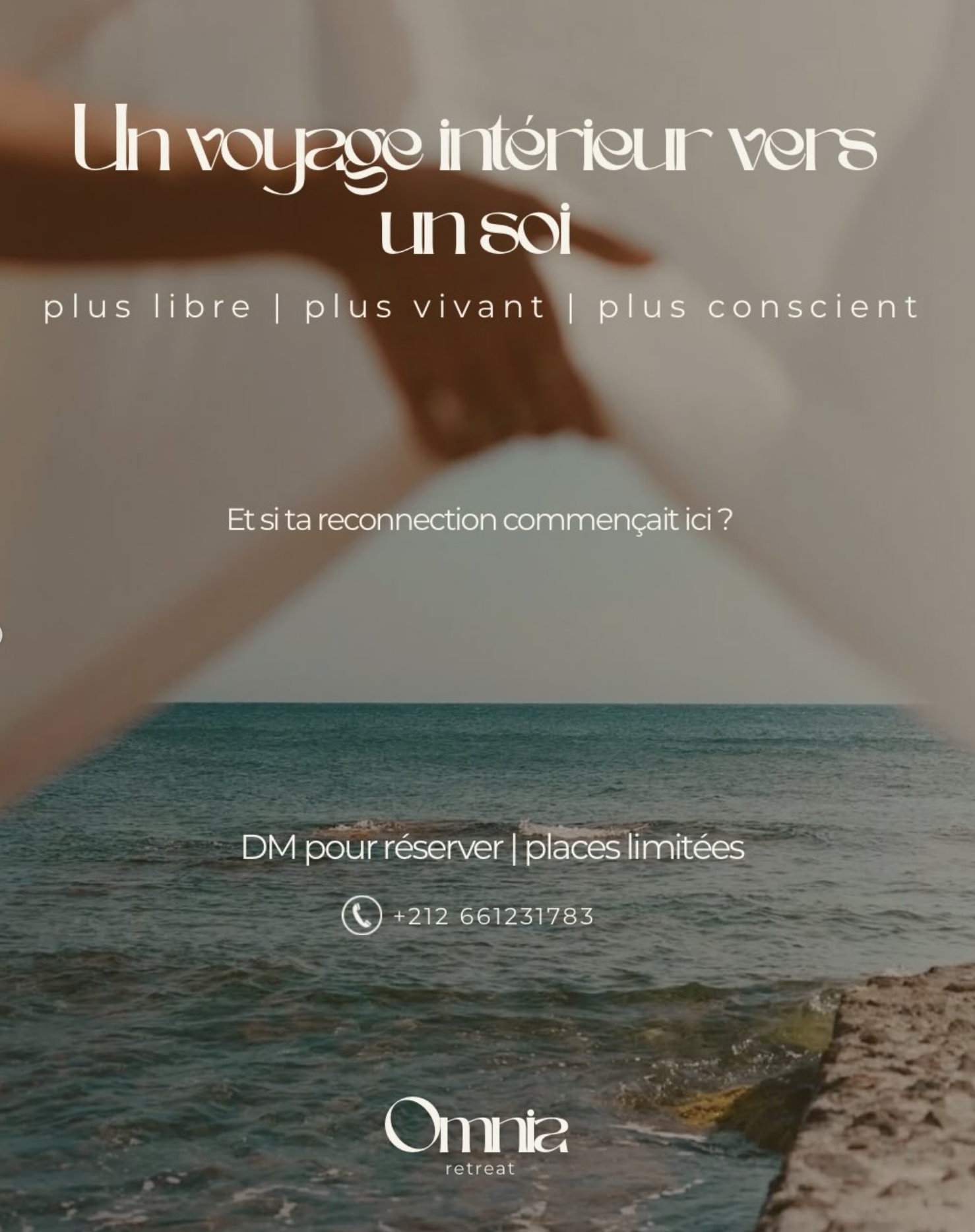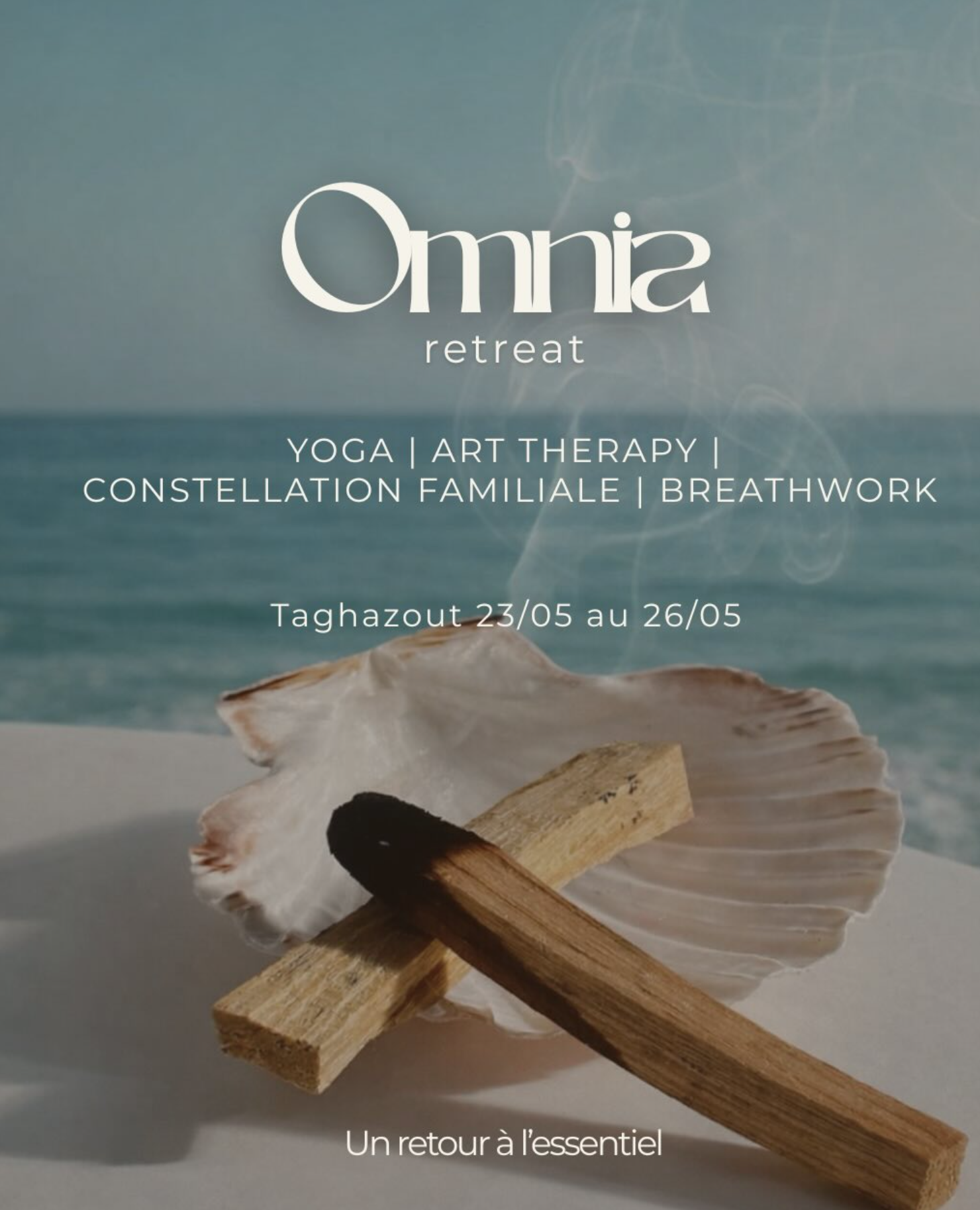 OMNIA is a holistic retreat designed as a space for personal reconnection and inner balance, organized in Taghazout. The event takes place in a natural coastal environment combining ocean and calm surroundings, offering participants a structured well-being experience. The retreat includes daily yoga sessions, guided breathwork, family constellation workshops, art therapy sessions, aromatherapy activities, and group sharing circles. Participants stay in a villa setting with shared or private accommodation options, and benefit from structured well-being activities and meals.
