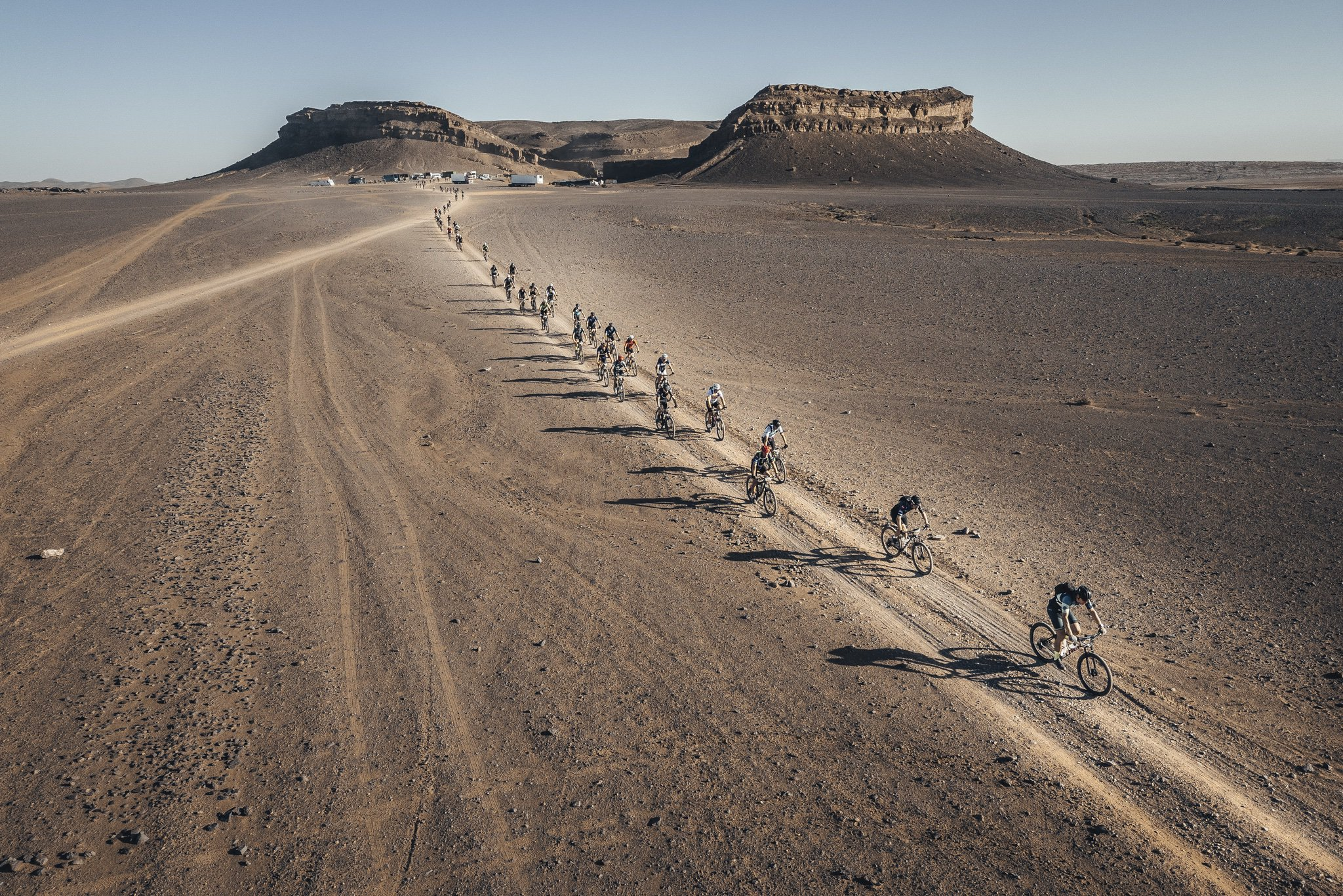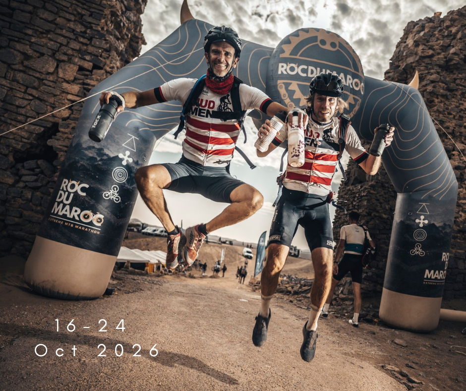 RocDuMaroc is a multi-day mountain bike (MTB) marathon held in southern Morocco, presented as an endurance cycling challenge across diverse terrains between the Atlas Mountains and the Sahara. The route connects Ouarzazate to Merzouga, passing through canyons, palm valleys, desert plateaus and mountain tracks. The event consists of six stages totaling approximately 666 km with significant elevation gain. Riders compete solo or in teams on off-road terrain including rocky trails, sand sections and technical climbs. The format includes GPS navigation, daily stages with rankings, and structured bivouac camps with logistical support, meals, and assistance throughout the race.