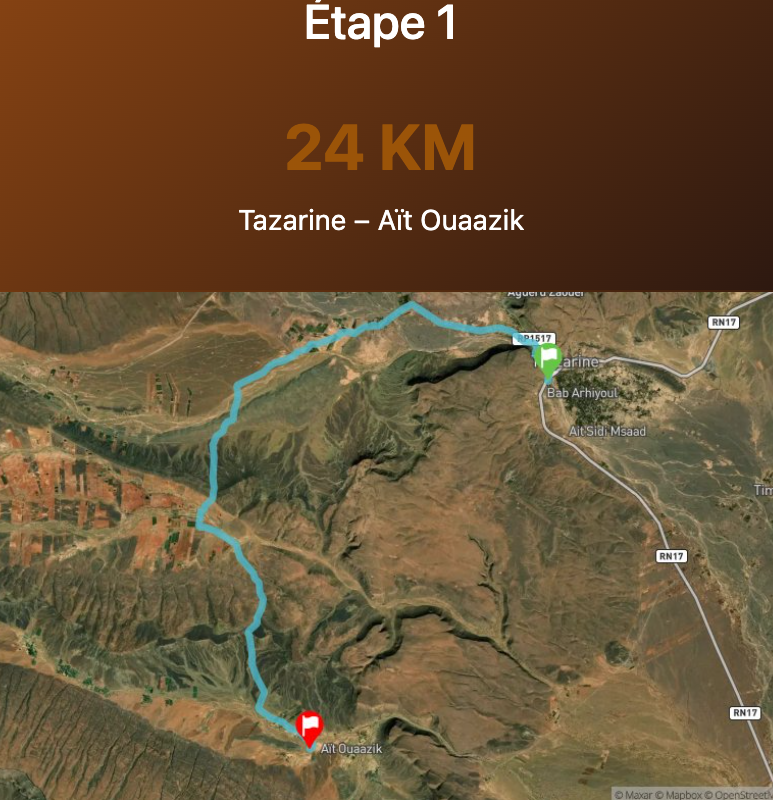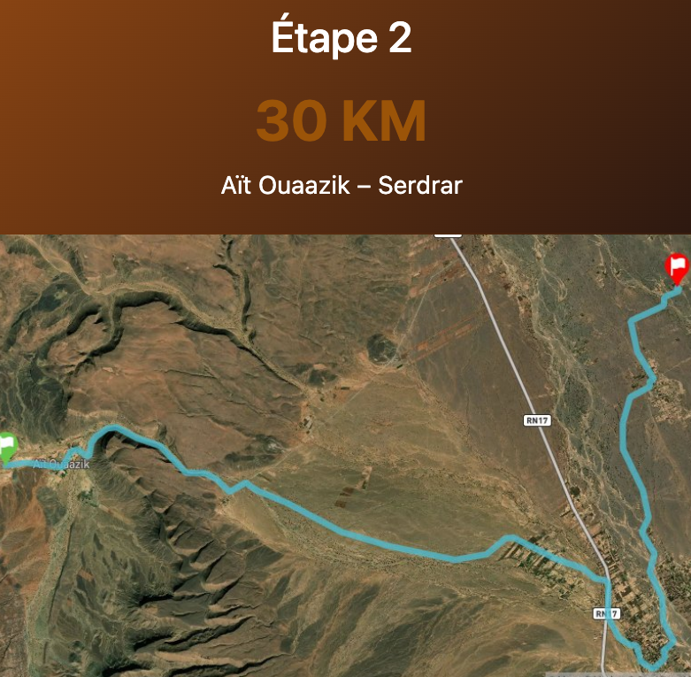 Tazarine Acacia Trail is a stage trail event organized by Tour et Sport Events in collaboration with local partners and authorities in Tazarine, in Zagora Province. The event is positioned as a sporting, cultural, and immersive desert experience in southeastern Morocco, highlighting acacia landscapes, oases, rocky plateaus, dry riverbeds, dunes, and traditional villages. The event is structured as a 110 km endurance course over four stages, with formats open to runners, walkers, and accompanying participants. It is presented in semi-autonomy, combining trail effort, walking access, bivouac-style logistics, and local discovery in an environment centered on desert ecosystems, responsible tourism, and human exchange.