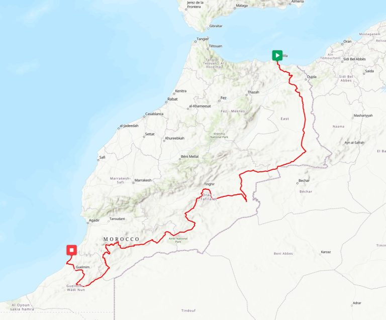 This event is organized by Morocco Bike Adventure as a new self-supported bikepacking race crossing southern Morocco from Nador to Sidi Ifni. The pioneer edition focuses on remote desert, oasis and gravel landscapes, following historic routes and isolated regions across the country. The format is a single-stage, self-supported event with solo and pair categories and two route options (piste/gravel or road). Riders navigate independently using GPX tracks, with long distances between resupply points and no external assistance, covering distances of around 1,900 to 2,000 km.