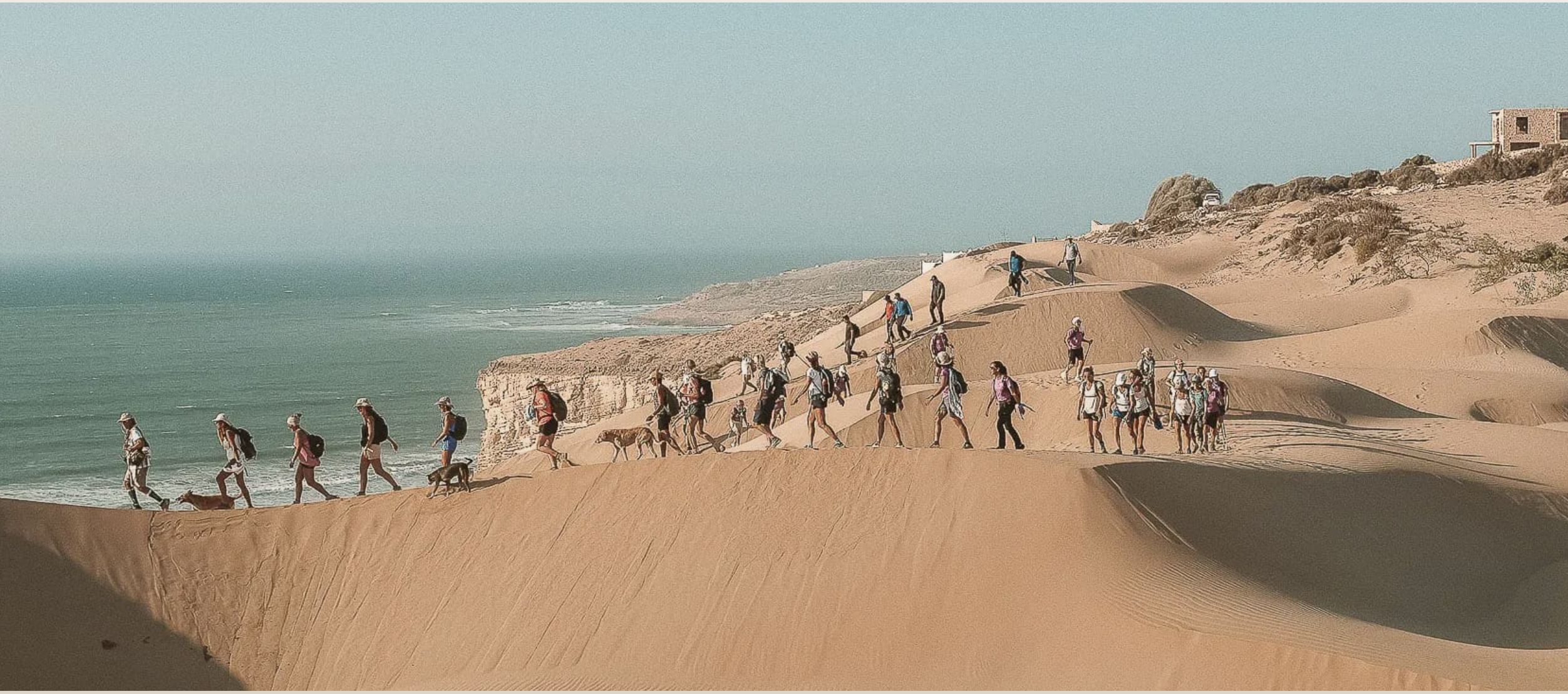 This trekking event is organized by Mélanie and takes place along the Atlantic coast near Essaouira. It is a women-only trekking experience combining coastal landscapes and outdoor exploration. The format includes a six-day journey with around 80 km of trekking over four days along beaches and dunes. The program includes daily walking stages, yoga sessions and bivouac accommodation with full logistical support.